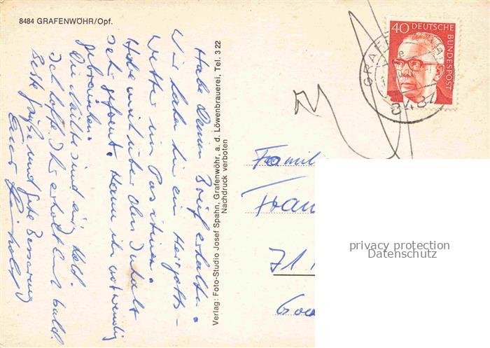 74049343 alte Postkarte Grafenwoehr Wasserturm Marienplatz Rathaus Luftaufnahme postalisch gelaufen Erhaltung siehe scans [FriedD77] KatCode: 11110009374124