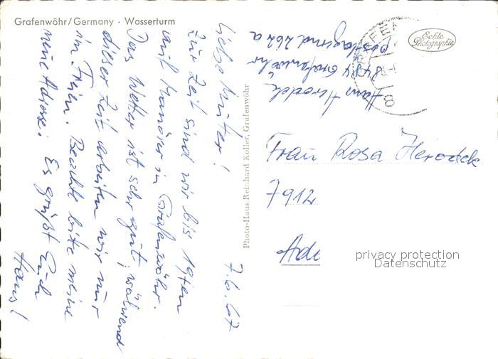 72094660 alte Postkarte Grafenwoehr Wasserturm postalisch gelaufen Erhaltung siehe scans KatCode: 11110009374124