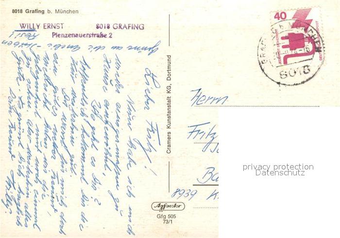 73157790 alte Postkarte Grafing Muenchen Hauptstrasse Volksbank Mariensaeule postalisch gelaufen Erhaltung siehe scans [FriedD77] KatCode: 11110009175122