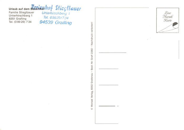 73896467 Grafling Niederbayern Ferienhof Stieglbauer Appartement Pferdewagen postalisch nicht gelaufen Erhaltung siehe scans [WerneD78] KatCode: 11110009271122