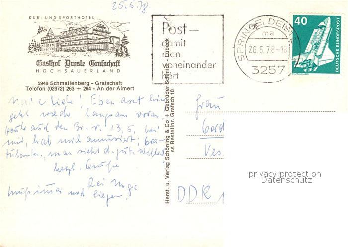 72934028 alte Postkarte Grafschaft Sauerland Gasthof Droste Gastraeume postalisch gelaufen Erhaltung siehe scans [WerneD78] KatCode: 11110005958040