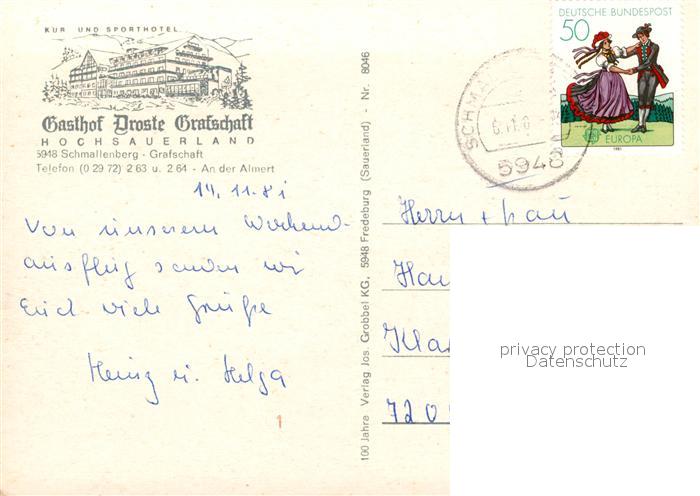 73204352 alte Postkarte Grafschaft Sauerland Gasthof Droste Kaminzimmer postalisch gelaufen Erhaltung siehe scans [FriedD77] KatCode: 11110005958040