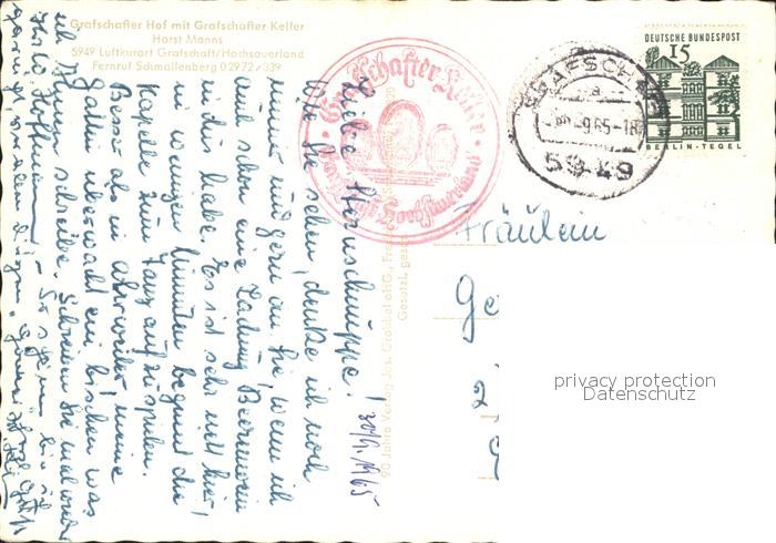 72280737 alte Postkarte Grafschaft Sauerland Grafschafter Hof Restaurant Grafschafter Keller Weinkeller postalisch gelaufen Erhaltung siehe scans KatCode: 11110005958040