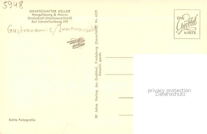 73700332 Grafschaft Sauerland Grafschafter Keller Gastraum postalisch nicht gelaufen Erhaltung siehe scans [FriedD77] KatCode: 11110005958040