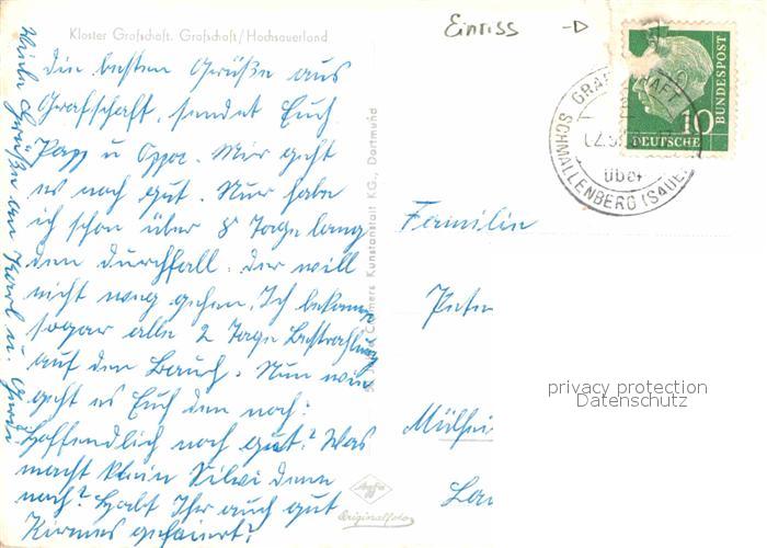 72901187 alte Postkarte Grafschaft Sauerland Kloster Grafschaft postalisch gelaufen Erhaltung siehe scans [PaolaD17] KatCode: 11110005958040