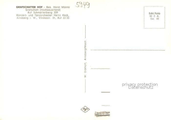73700896 Grafschaft Sauerland Weinlied Im Grafschafter Weinkeller Grafschafter Keller Musikkapelle postalisch nicht gelaufen Erhaltung siehe scans [FriedD77] KatCode: 11110005958040