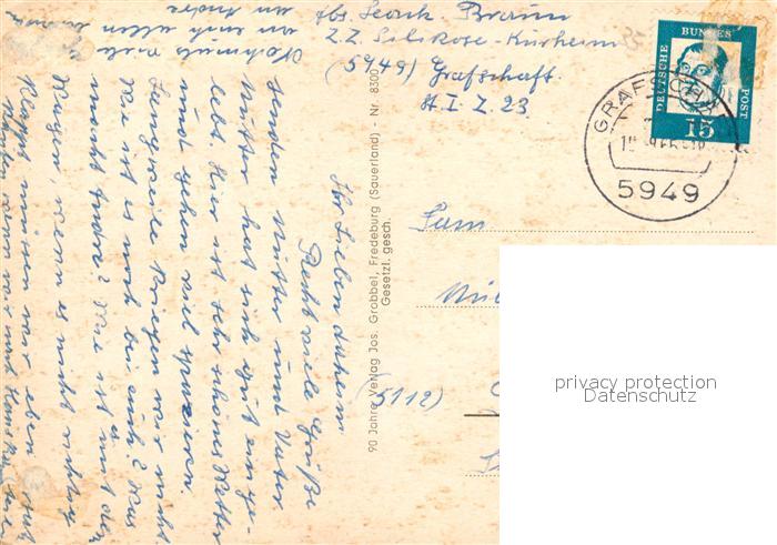 73039414 alte Postkarte Grafschaft Sauerland Witzenberg Kapelle Kloster Muehlenteich postalisch gelaufen Erhaltung siehe scans [KathaD81] KatCode: 11110005958040