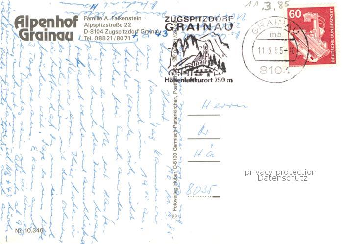 73150934 alte Postkarte Grainau Alpenhof Hallenbad Restaurant Terrasse postalisch gelaufen Erhaltung siehe scans [FriedD77] KatCode: 11110009180118