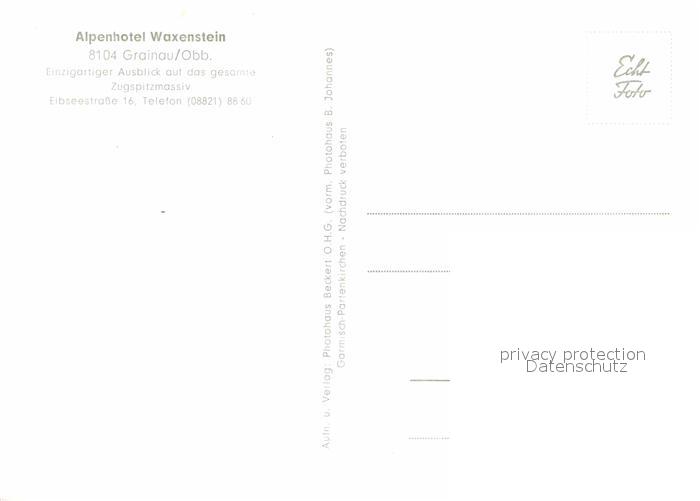 72747197 Grainau Alpenhotel Waxenstein postalisch nicht gelaufen Erhaltung siehe scans [LiesaD40] KatCode: 11110009180118