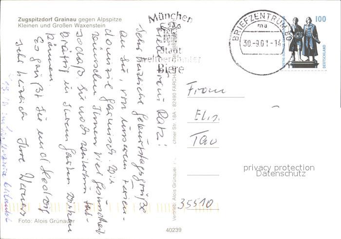 72417097 alte Postkarte Grainau Alpenspitze Kleinen und Grosse Waxenstein postalisch gelaufen Erhaltung siehe scans KatCode: 11110009180118