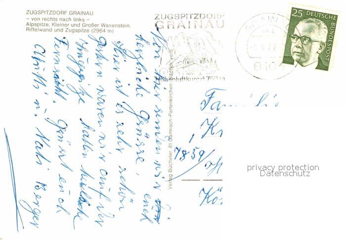 72859288 alte Postkarte Grainau Alpspitze Kl und Gr Waxenstein Riffelwand Zugspitze postalisch gelaufen Erhaltung siehe scans [WerneD78] KatCode: 11110009180118