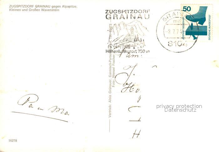 73311307 alte Postkarte Grainau Alpspitze kleiner und grosser Waxenstein postalisch gelaufen Erhaltung siehe scans [KathaD81] KatCode: 11110009180118