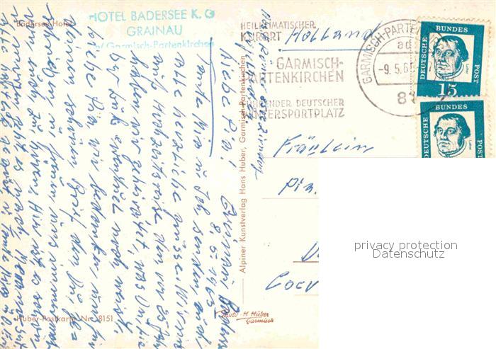 72664017 alte Postkarte Grainau Badersee Hotel Bootfahren postalisch gelaufen Erhaltung siehe scans [FriedD77] KatCode: 11110009180118