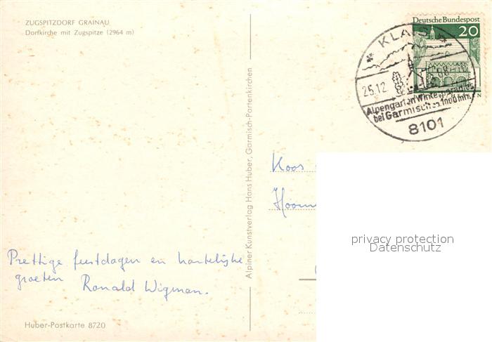 72932396 Grainau Dorfkirche mit Zugspitze postalisch nicht gelaufen Erhaltung siehe scans [WerneD78] KatCode: 11110009180118