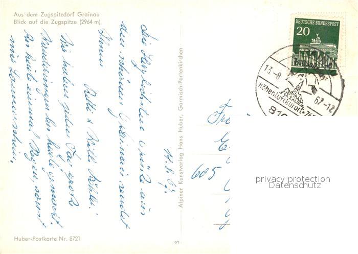 73041172 alte Postkarte Grainau Dorfmotiv mit Zugspitzblick postalisch gelaufen Erhaltung siehe scans [WerneD78] KatCode: 11110009180118