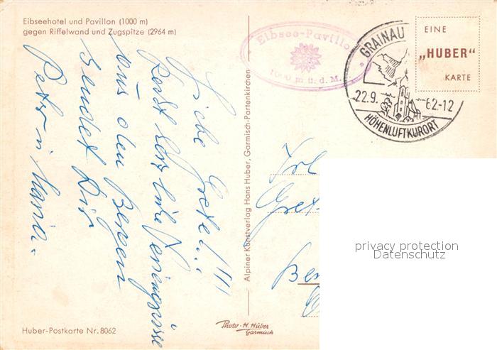 73017655 alte Postkarte Grainau Eibseehotel und Pavillon mit Riffelwand und Zugspitze postalisch gelaufen Erhaltung siehe scans [WerneD78] KatCode: 11110009180118