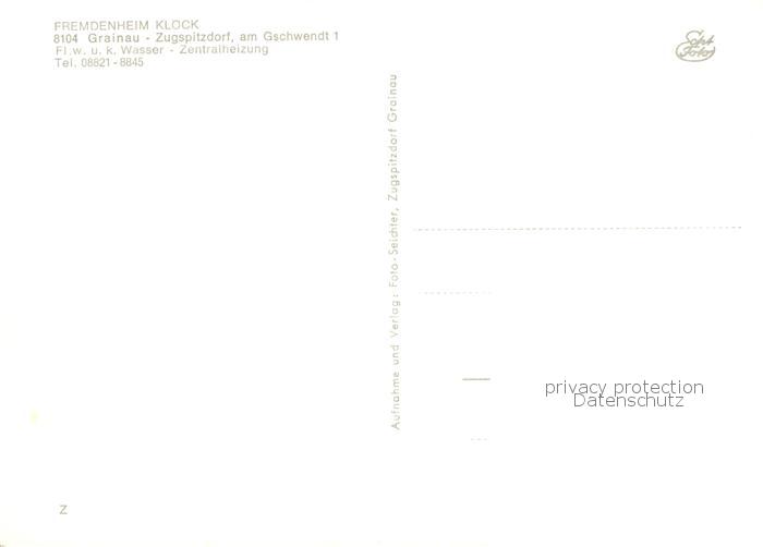 73852277 Grainau Fremdenheim Kloeck Zugspitzdorf postalisch nicht gelaufen Erhaltung siehe scans [FriedD77] KatCode: 11110009180118