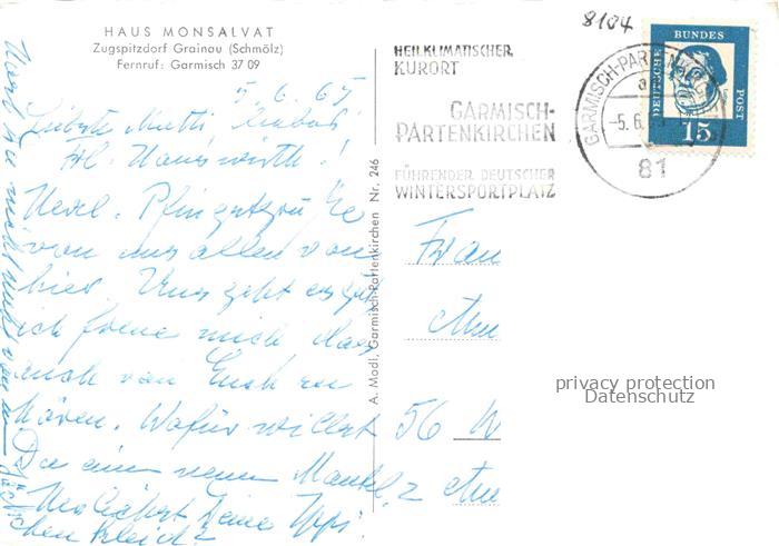 74112862 alte Postkarte GRAINAU Gaestehaus Haus Monsalvat postalisch gelaufen Erhaltung siehe scans [FriedD77] KatCode: 11110009180118