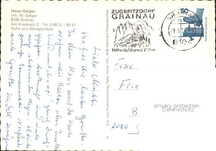 72286737 alte Postkarte Grainau Haus Geiger postalisch gelaufen Erhaltung siehe scans KatCode: 11110009180118