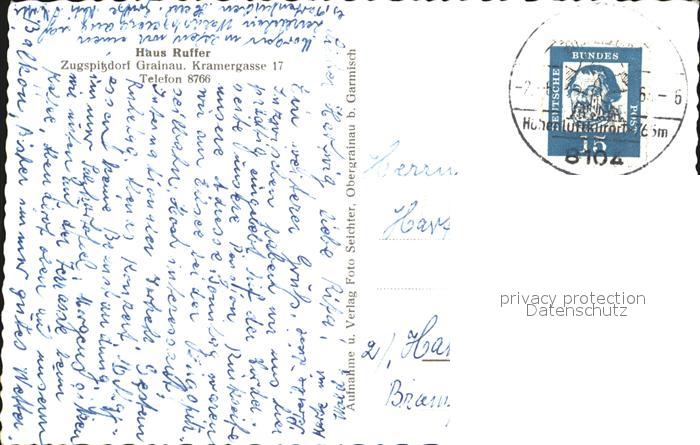 72506463 alte Postkarte Grainau Haus Ruffer postalisch gelaufen Erhaltung siehe scans KatCode: 11110009180118
