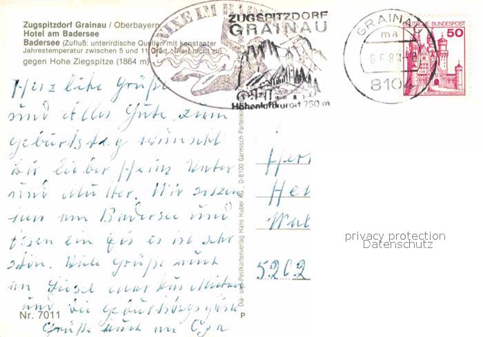 72836414 alte Postkarte Grainau Hotel am Badersee postalisch gelaufen Erhaltung siehe scans [PaolaD17] KatCode: 11110009180118