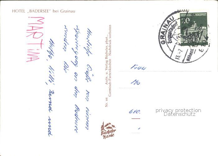 alte Postkarte Grainau Hotel Badersee postalisch gelaufen Erhaltung siehe scans