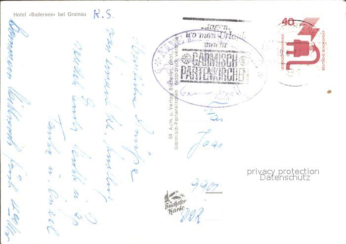 72425270 alte Postkarte Grainau Hotel Badersee postalisch gelaufen Erhaltung siehe scans KatCode: 11110009180118