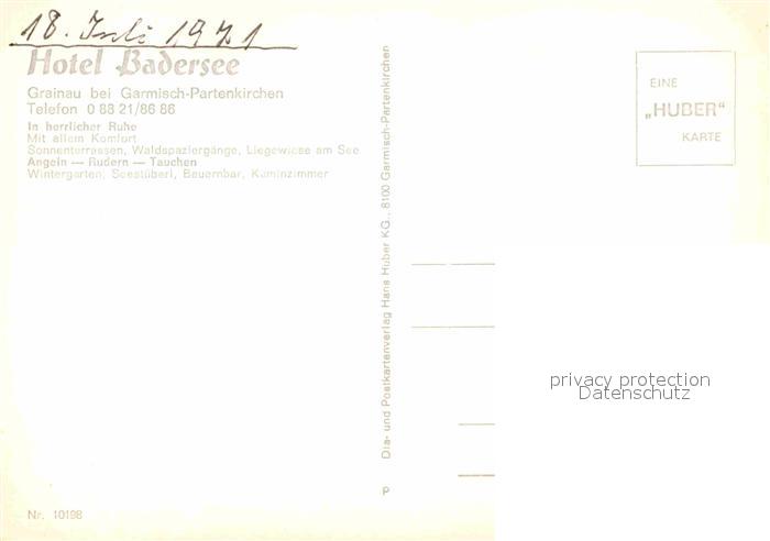 72841874 alte Postkarte Grainau Hotel Badersee Bootspartie postalisch gelaufen Erhaltung siehe scans [WerneD78] KatCode: 11110009180118