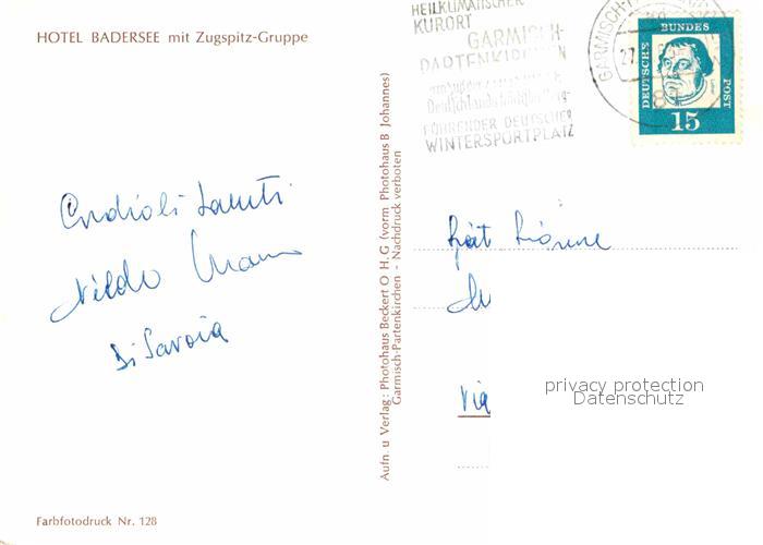 72826839 alte Postkarte Grainau Hotel Badersee Zugspitz-Gruppe postalisch gelaufen Erhaltung siehe scans [NatalD47] KatCode: 11110009180118