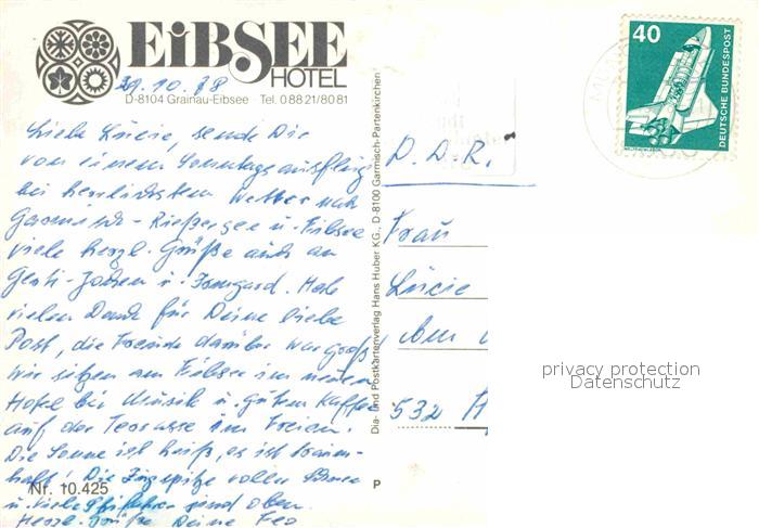 72780224 alte Postkarte Grainau Hotel Eibsee Restaurant Kamin Seeterrasse Tennis Segeln Alpenblick postalisch gelaufen Erhaltung siehe scans [FriedD77] KatCode: 11110009180118