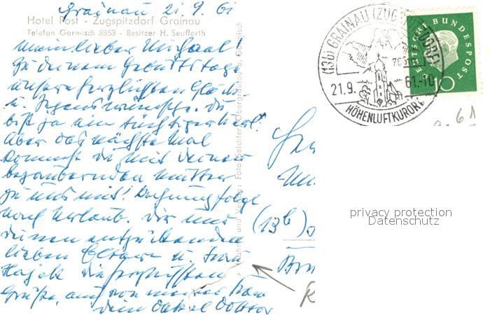 73150267 alte Postkarte Grainau Hotel Post Zugspitzdorf Wettersteingebirge postalisch gelaufen Erhaltung siehe scans [FriedD77] KatCode: 11110009180118