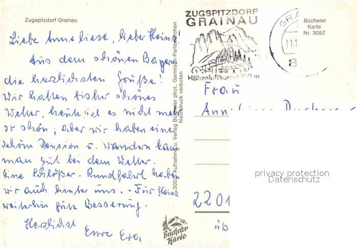 72688790 alte Postkarte Grainau Kirche Dorfplatz Kurplatz Badersee Hotel Waxenstein Alpspitze Wettersteingebirge postalisch gelaufen Erhaltung siehe scans [FriedD77] KatCode: 11110009180118
