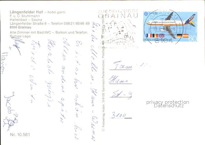 71908901 alte Postkarte Grainau Laengenfelder Hof Hotel Garni postalisch gelaufen Erhaltung siehe scans KatCode: 11110009180118