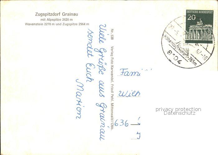 72531938 alte Postkarte Grainau mit Alpspitze Zugspitze postalisch gelaufen Erhaltung siehe scans [LiesaD40 kt094box] KatCode: 11110009180118
