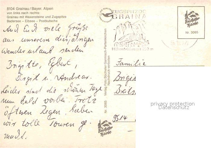 72654312 alte Postkarte Grainau mit Waxensteine Zugspitze Badersee Eibsee Postkutsche postalisch gelaufen Erhaltung siehe scans [WerneD78] KatCode: 11110009180118