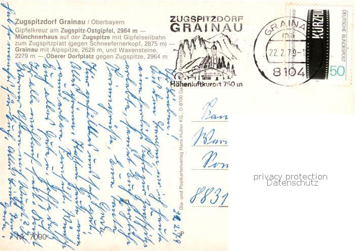 72993737 alte Postkarte Grainau Muenchnerhaus Zugspitze Oberer Dorfplatz Kirche postalisch gelaufen Erhaltung siehe scans [AndreD76] KatCode: 11110009180118