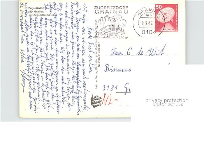 72581046 alte Postkarte Grainau Ortsansicht mit Kirche Blick zur Zugspitze Wettersteingebirge im Winter postalisch gelaufen Erhaltung siehe scans [FriedD77] KatCode: 11110009180118