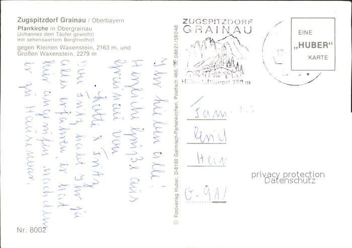 72382020 alte Postkarte Grainau Pfarrkirche postalisch gelaufen Erhaltung siehe scans KatCode: 11110009180118