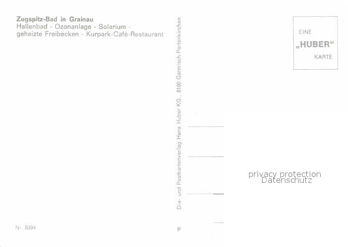 72825275 Grainau Zugspitzbad Hallenbad Ozonanlage Solarium Kurpark Cafe Restaurant Huber Karte Nr 8394 postalisch nicht gelaufen Erhaltung siehe scans [FriedD77] KatCode: 11110009180118