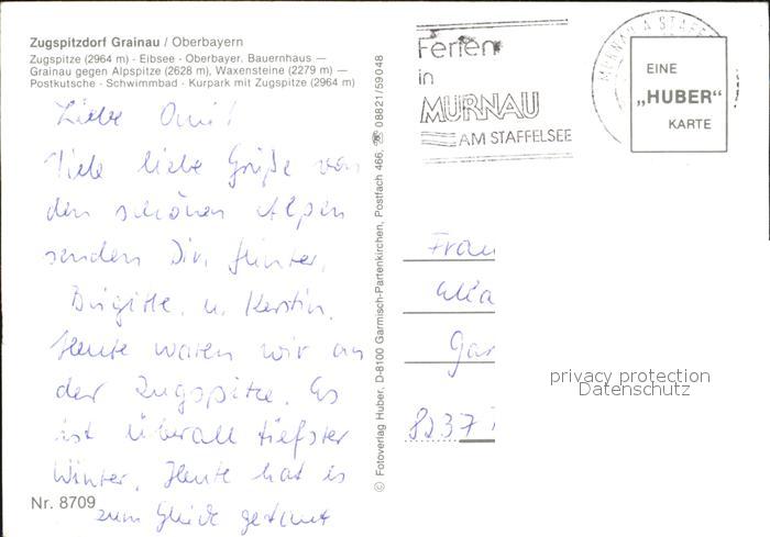 72418939 alte Postkarte Grainau Zugspitzdorf Eibsee Waxensteine Postkutsche Schwimmbad Kurpark postalisch gelaufen Erhaltung siehe scans KatCode: 11110009180118