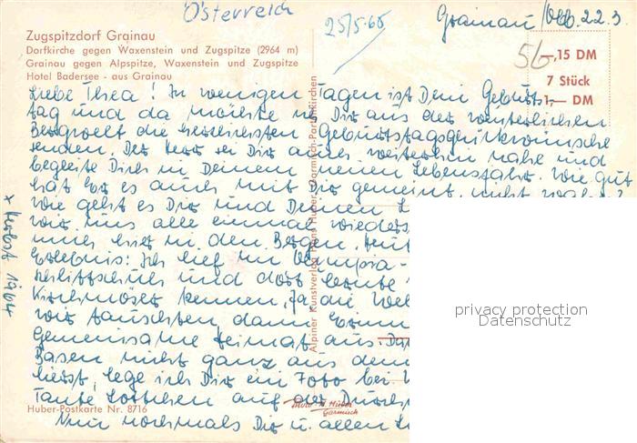 72825809 Grainau Zugspitzdorf Kirche Waxenstein Zugspitze Alpspitze Hotel Badersee postalisch nicht gelaufen Erhaltung siehe scans [LiesaD40] KatCode: 11110009180118