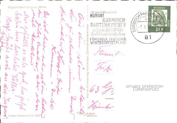 72437391 alte Postkarte Grainau Zugspitzdorf Zugspitze Alpspitze Waxenstein Dorfbild Badersee postalisch gelaufen Erhaltung siehe scans KatCode: 11110009180118