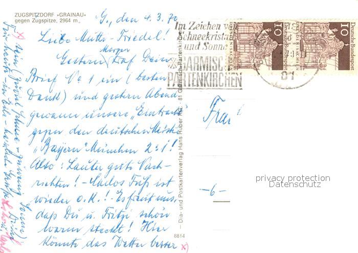 73122294 alte Postkarte Grainau Zugspitzdorf Zugspitze Winter postalisch gelaufen Erhaltung siehe scans [KathaD81] KatCode: 11110009180118