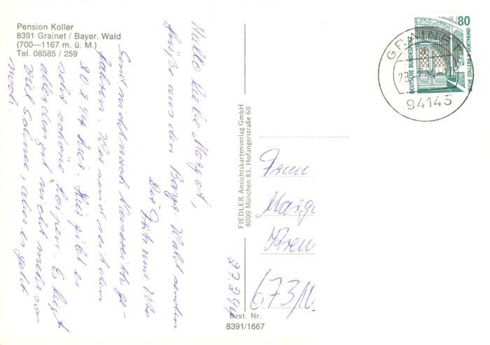 73875394 alte Postkarte Grainet Pension Koller postalisch gelaufen Erhaltung siehe scans [FriedD77] KatCode: 11110009272121