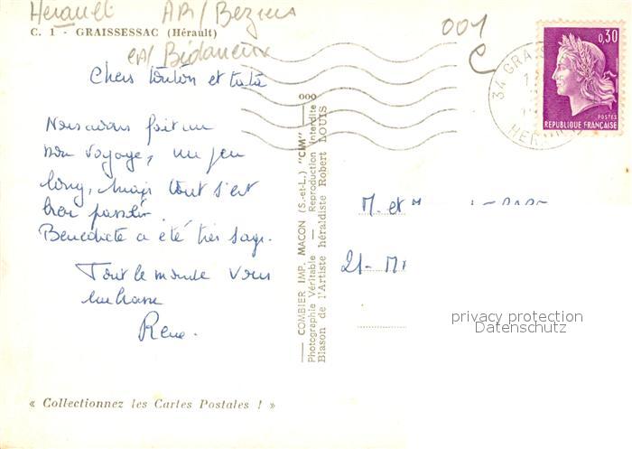 13525969 carte postale Graissessac Vue partielle postalisch gelaufen Erhaltung siehe scans [WerneD78] KatCode: 11170034134117
