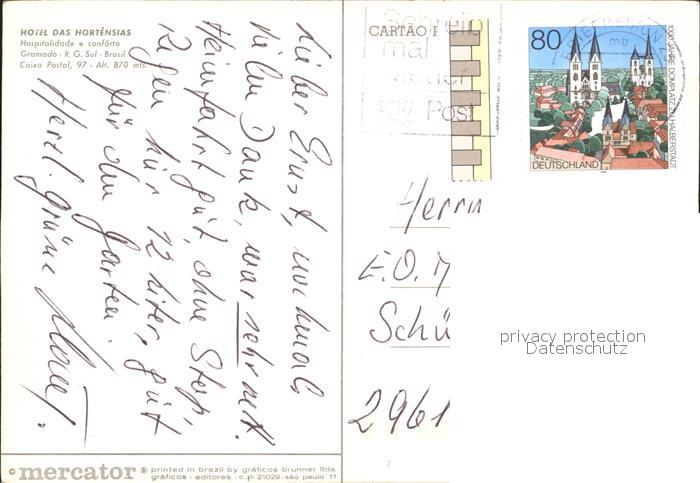 old postcard Gramado Brasilien Hotel das Hortensias postalisch gelaufen Erhaltung siehe scans