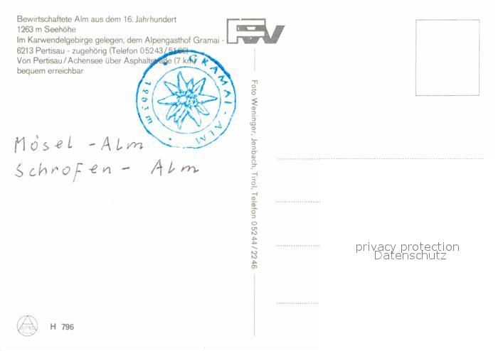 72913654 Gramaialm Alm Karwendel Pertisau postalisch nicht gelaufen Erhaltung siehe scans [LiesaD40] KatCode: 11390335070907