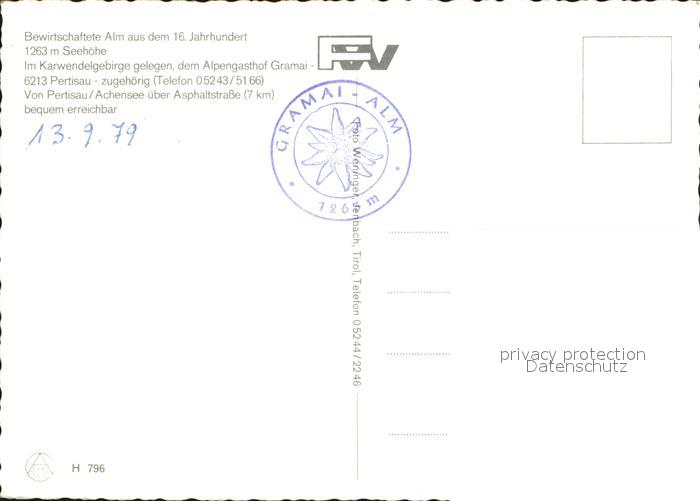 72586598 Gramaialm Alm Karwendelgebirge Alpengasthof Gramai Pertisau postalisch nicht gelaufen Erhaltung siehe scans [AntonD74] KatCode: 11390335070907