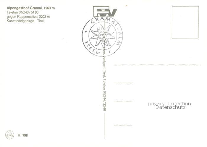 73049451 Gramaialm Alpengasthof Gramai postalisch nicht gelaufen Erhaltung siehe scans [KathaD81] KatCode: 11390335070907