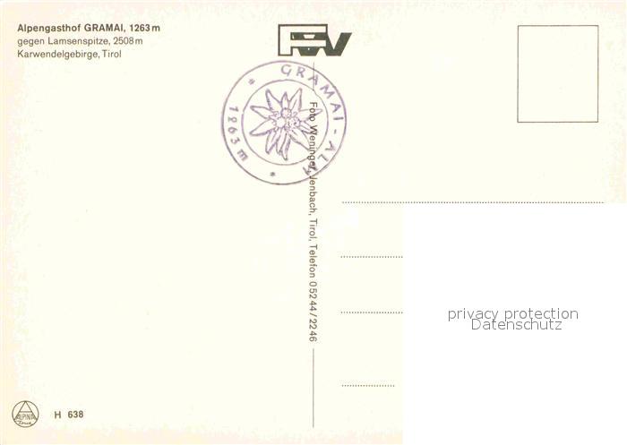 72814353 Gramaialm Alpengasthof Gramai postalisch nicht gelaufen Erhaltung siehe scans [AndreD76] KatCode: 11390335070907